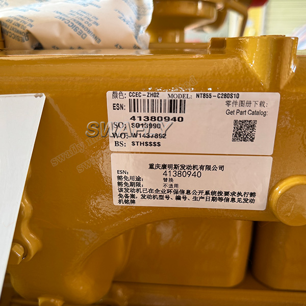 బుల్డోజర్ కోసం కమ్మిన్స్ CCEC NT855 -C280 కారిట్ ఇంజిన్ అసెంబ్లీ 6 - సిలిండర్ ఇన్లైన్, 14 - లీటర్ నాలుగు - స్ట్రోక్ ఇంజిన్. ఇది 140 మిమీ (5.5 అంగుళాలు) మరియు 152 మిమీ (6.0 అంగుళాలు) స్ట్రోక్ కలిగి ఉంది. ఈ NT855 - C280 పారిశ్రామిక ఇంజిన్ PT ఇంధన వ్యవస్థతో అమర్చబడి టర్బోచార్జర్తో వస్తుంది. 1800 ఆర్పిఎమ్ వద్ద, దాని ప్రధాన శక్తి 240 హెచ్పి (175 కిలోవాట్). ఇంజిన్ దాని గరిష్ట టార్క్ 1050 N · M (750 lb · ft) 1400 RPM వద్ద చేరుకుంటుంది.